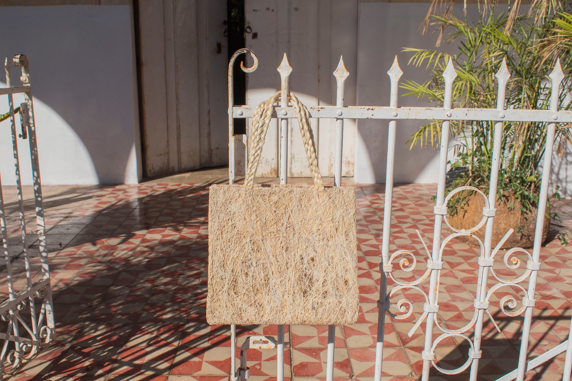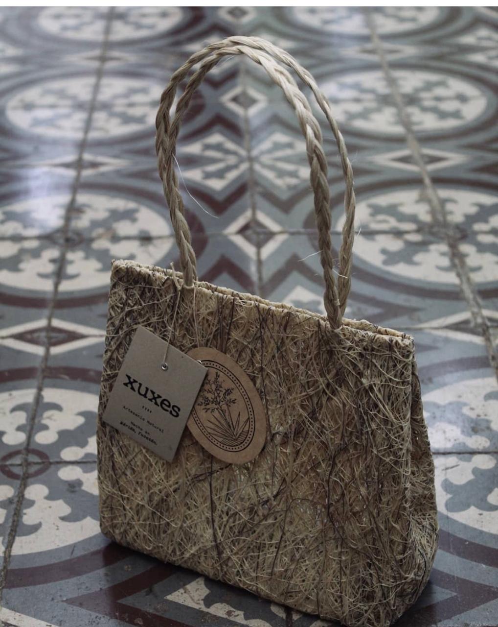 Bolsa Ana Maria mini de 23x25 cm hecha con fibras naturales y hule. Asas trenzadas cómodas y resistentes. Perfecta para llevar lo esencial.